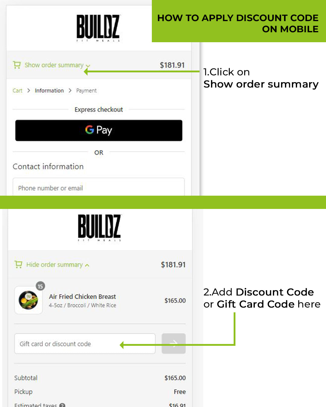 How to apply discount code or gift card on mobile.